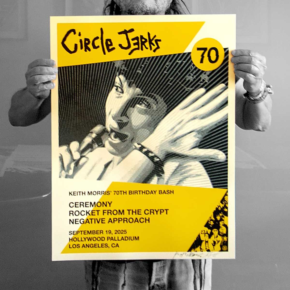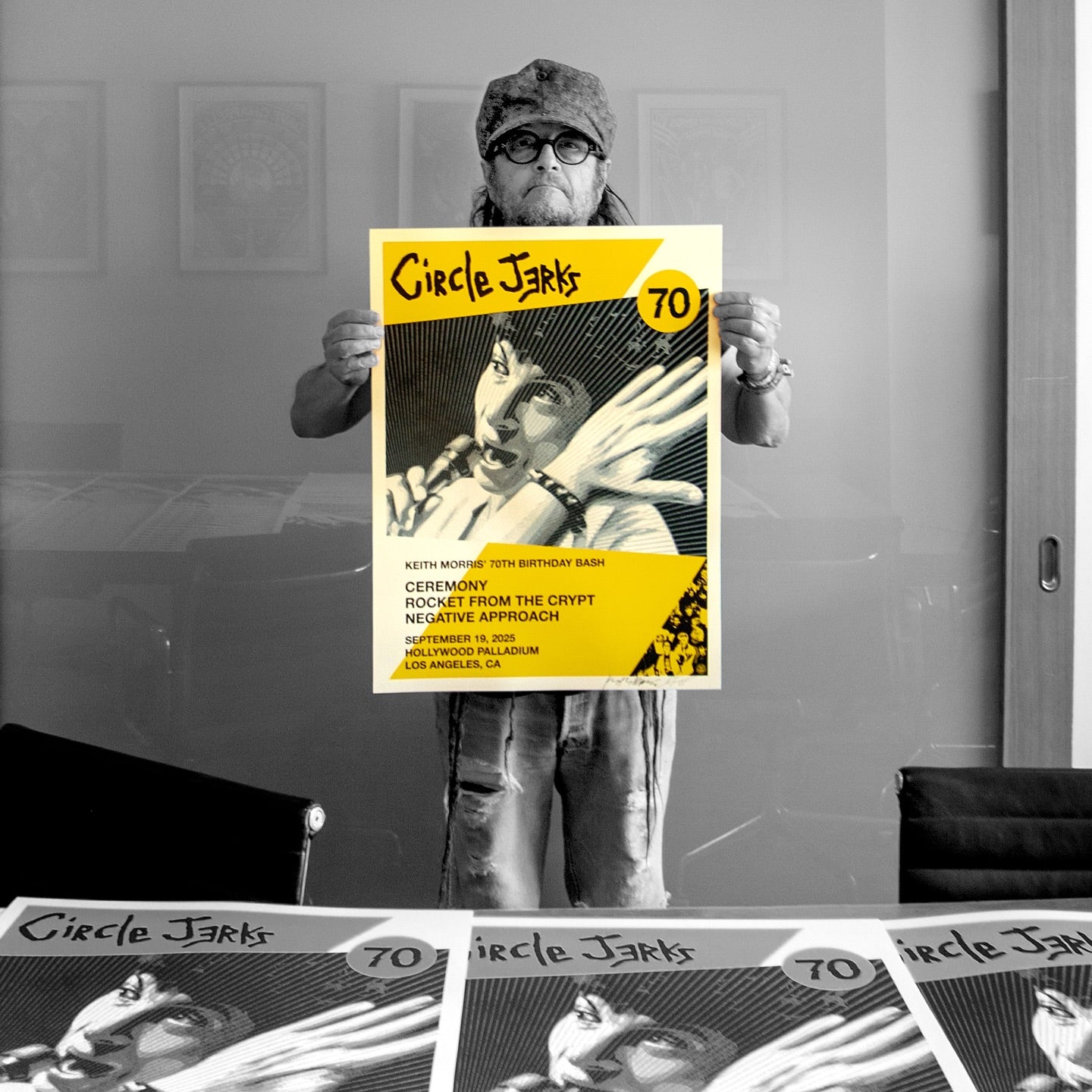 18 x 24 SILK SCREENED POSTER CREATED BY SHEPARD FAIREY FOR KEITH MORRIS’ BIRTHDAY AT THE HOLLYWOOD PALLADIUM. LIMITED TO 550. ALL POSTERS ARE SIGNED BY KEITH MORRIS & SHEPARD FAIREY.